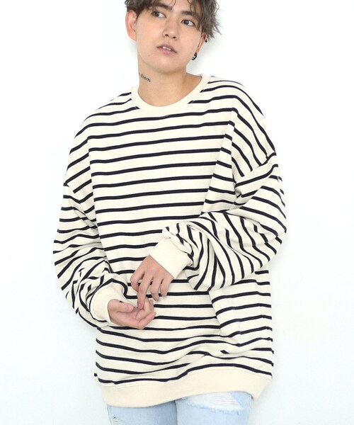【商品説明】 今シーズンのトレンドをリードするビックシルエットのフォルムで、着こなしに遊び心を加えてくれるボーダー柄のスウェットです。 基本、ベーシックな仕上げになっているのでコーディネイトの幅をグッと広げてくれる1着。 デニムやチノパン等の定番カジュアルなボトムスはもちろんワイドパンツに合わせてルーズな仕上げも今シーズンのおススメ。 これからの季節に心地良い素材感とストレスフリーな着心地です。 【サイズ】 肩幅:64cm 身幅:61cm 着丈:73cm そで丈:58cm 【素材】 コットン100% zurry 生地 【モデル】 163cm ※モデル着用画像は光の当たり具合で色味が違って見える場合がございます。 実物の商品の色味は物撮り画像をご参照ください。 MADE IN KOREA