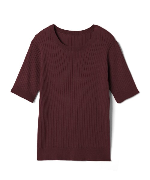 リブニットが肌触りがよく、伸縮性があるから着心地抜群。 5分丈袖が二の腕をカバーし、適度にゆとりのあるシルエットなので、体型が気になる方にもおすすめ。 ★伸縮性があります。 ★素材の特性上、カラー・形・サイズが、写真・サイズ表示と多少異なる場合があります。