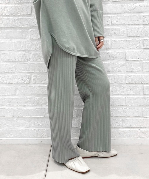 \セットアップで着られるニットパンツ/柔らかなリブ素材でストレスフリーな着心地のニットイージーパンツ。 もちっと肌触りの良い、リラックス感のあるニット素材。スタイリングのアクセントになる、凸凹感のあるリブがポイント。 ストンと落ち感のあるシルエットに、リブの縦ラインがすっきりと見せてくれます。程良くゆとりのあるサイズ感で、ウエストもゴム仕様なのでストレスフリーに穿けるのが嬉しいポイント。 セットアップタートルチュニック (DDZ1002302A0006) とのセットアップでの着用はもちろん、ロングワンピースとのレイヤードやブラウスなどとのコーディネートも楽しんでいただけます。 ********************** ・ゆったりとノンストレスな着心地 ・縦ラインを強調してくれるリブの凸凹感 ・セットアップでの着用可能 **********************
