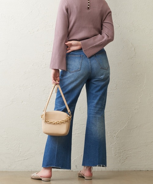 【2020AW natural couture】スタイルアップ効果の期待できるフレアデニムパンツから新色登場!※321510000と同型昨年のAWで登場したフレアデニムを定番としてリニューアル!程よいフレアとセンタープレスで、上品見えしてこなれ感のあるアイテム。カジュアル過ぎずキレイめな印象に見せてくれ、センタープレスを入れることでより美脚効果が期待できる優れもの。裾は裁ち切り長さをカット出来るように、特殊なステッチが入っています。◎カジュアルなカットソーなどはもちろん、ジャケット合わせでトレンド感のある着こなしにもぴったりです。どんな足元とも相性の良いデニムパンツは、ワードローブに加えておくと重宝すること間違いなしの一着。