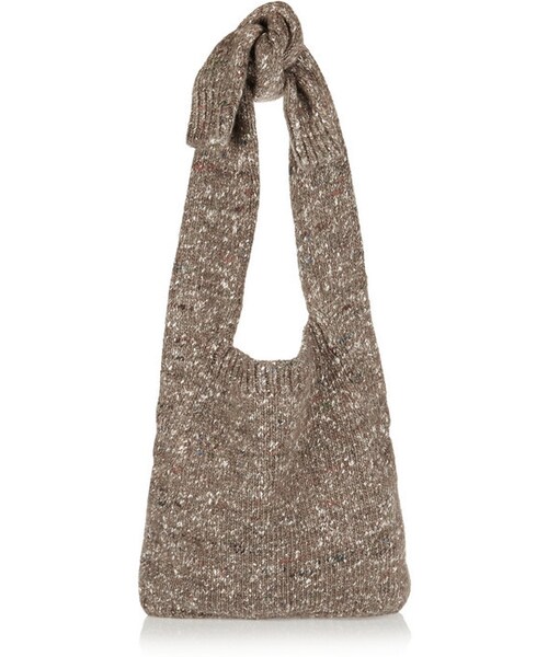 Stella McCartney's Fall '14 runway collection defined the season's sweater dressing trend, and this shoulder bag is a playful extension of the look. It's spun from a wool-blend woven with touches of alpaca and silk for a luxurious texture. We love that you can adjust the length by knotting the strap. Mocha, rust, green and off-white wool, alpaca and silk-blend Open top 65% wool, 20% alpaca, 15% silk Dry clean