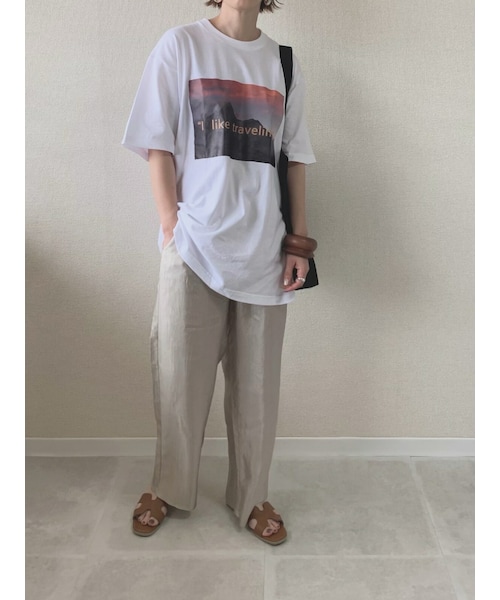 misato select # "I like traveling" T-shirt ロゴが目を引く メンズライクなBig T-shirt この夏一枚で旬なコーデに パンツにインしてもアウトで着ても 様になります◎