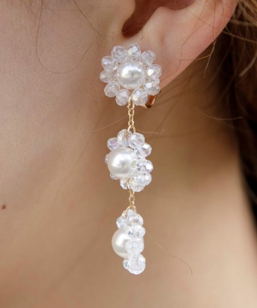 flowerの人気アイテム!flower/フラワー シアーフラワリーイヤリング■デザイン耳元で三連の透明なお花がゆらゆらと揺れるパールイヤリング。グラスビーズのクリアな花びらの真ん中には1粒のパールをあしらっています。ワンポイントのパールでラブリーになりすぎないので、幅広く着用出来ます。ゴールドのチェーンも高見えポイント。両耳セットでの販売です。■コーディネートカジュアルスタイルの普段使いはもちろん、結婚式やパーティなどのドレススタイルにも◎存在感がありますので顔回りの他の装飾品は控えめなデザインにするとより引き立ちます。■flower/フラワー「love&joy」をコンセプトに、商品に愛を込め、お客様に楽しんでいただけるような、ナチュラルでガーリーなアイテムを提案していきます。【お買い物を上手にお楽しみいただくためのPOINT2つ】◎ 購入ボタン横の ♡ (ハートマーク)をクリック! 完売カラーの再入荷通知、残り1点の通知、セールの通知を受け取れます。 (クリックまたはタップで商品のお気に入り登録♪)◎ ショップのトップページにある ♡ (ハートマーク)「お気に入りショップに追加」をクリック! 新商品や再入荷等、いち早くブランドのお得な情報を受け取れます。 (ブランドのお気に入り登録♪)