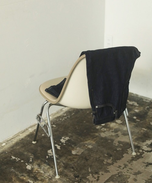 ハイウエストデニムで、インディゴはワンウォッシュになり、スカイブルーは古着のような風合いに仕上げており、どちらもおすすめです。ゆるめのストレートデニムでおしり周りもゆとりがあり、ブーツとの相性も◎