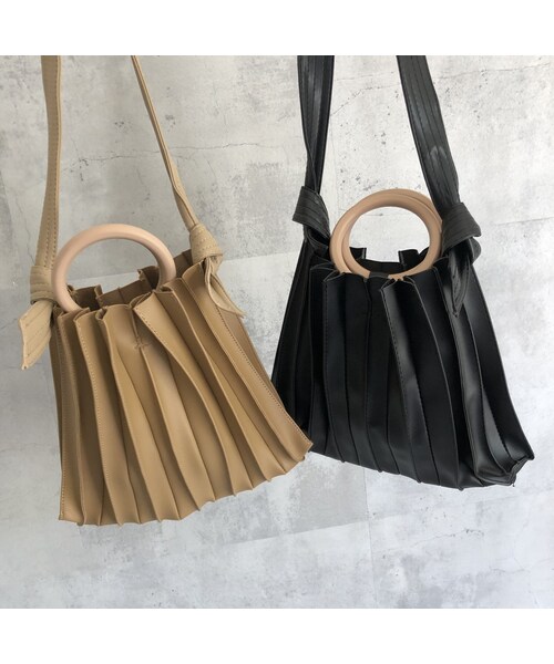 丁度いいサイズ感でプリーツ加工が目を惹く2wayバッグです。 ウッド調の丸いハンドルと無造作に縛ったショルダーで手持ちはもちろん、肩かけにしてもお使いいただけます♪ きれいめファッションから、カジュアルファッションまで幅広くお使い頂ける優秀おすすめアイテムです。 ■カラー キャメル・ブラック ■サイズ 高さ:25cm 横幅:33cm マチ:5cm ショルダー長さ:約70cm ※縛りなおしサイズ調節多少可 ショルダー幅:3.8cm 重さ:350g ※多少の誤差は予めご了承下さい。 ■素材 PUレザー(合成皮革) ※素材の性質上、染料の匂いが強いものがございます。数日のご使用や陰干しなどで気になる匂いはほとんど感じられなくなりますのでお試しください。予めご了承の上、お買い求めください。