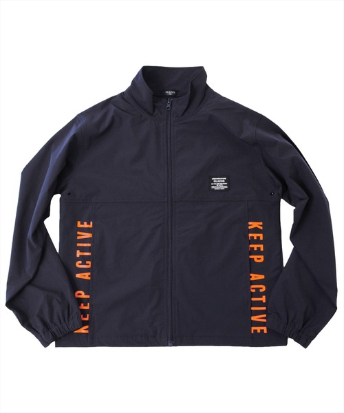 4wayストレッチ素材を使用した、ジップアップジャケットです。 縦横4方向に伸びるナイロンストレッチ素材を使用し、オーバーサイズのデザインでさらっと羽織れて、軽やかでストレスフリーな着心地が特徴。 サイドには蛍光カラーのプリント、バックにはGLZSマークのリフレクタープリントを施し、スポーティーなデザインに仕上げました。 脇下には空気穴がありムレ対策もバッチリ◎ インナーにはオーバーサイズなグラフィックTシャツなどを合わせジャケットの前は開け、ブラックのスキニーパンツを合わせれば、スポーツMIXなストリートスタイルに。 同素材のジョガーパンツとセットアップで着用すれば、部活の着替えやアクティブシーンにも着用いただけます。 デイリー使いにもスポーツ時にも使える便利なオススメアイテムです◎ 【モデル】身長147cm、体重33kg、着用サイズ:150cm