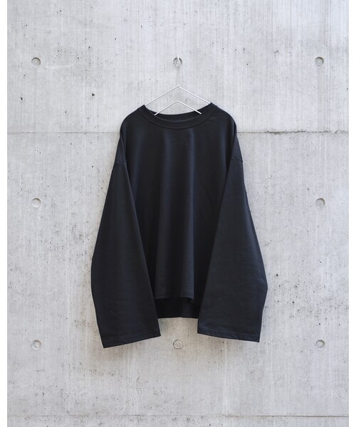 裾に向けて広がるフレアスリーブのカットソー。 袖丈は長めに、着丈は短めに、襟はやや広めに設計。 着丈が短めなので、通常着丈のカットソーやシャツとのレイヤードを楽しんだり、タックインの際には収まりが良いのが魅力です。 また、本来襟裏にあるネームタグは敢えて外に出し、遊び心のあるデザインにしました。 素材には、度詰天竺を使用。 度詰とは編み目を細かく密に詰めた素材で、一般的な天竺素材より肉厚で滑らで、洗濯を繰り返しても伸びにくく、よれづらい素材となっています。 【カラー】 BLACK 【サイズ】 2, 3, 4 【品番】 SK-CS-01 【素材】 コットン100% (衿リブ:コットン95%ポリウレタン5%) 【寸法】 ・size2 着丈 63cm 胸囲120cm 肩幅 57.5cm 袖丈 55cm ・size3 着丈 65cm 胸囲 124cm 肩幅 58.5cm 袖丈 56cm ・size4 着丈 67cm 胸囲 128cm 肩幅 59.5cm 袖丈 57cm