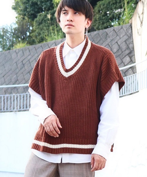 【Air Tokyo(エアートウキョー)2020 AW COLLECTION】 ビッグシルエット ローゲージ チルデンニットベスト 【ファッションインフルエンサーRyooo × AIR TOKYOコラボ】 オーバーサイズ Vネック インフルエンサーRyoooo×Air Tokyoの初コラボアイテム「Vネックオーバーサイズニットベスト」 トレンドのビッグシルエットのニットにRyooooが厳選して選んだチョコレートブラウンとブラックの2色で何にでも合せやすいカラーとなっています。 ドロップショルダーの肩落ち感が着用しやすくインナーに大きめのシャツやカットソーを着用するのは勿論の事、 上に羽織るアウターもニットベストの為腕回りがダブつかず着やすい1枚となっています。 脇裾のスリットがアクセントとなっているのと太めの配色ラインがRyoooo拘りのポイント! 編地もざっくりしていてユニセックスなアイテムでもありますので男女ともこれから季節の着回しアイテムです。 Air Tokyo(エアートウキョー) 様々なスタイルがある『今』の感性を反映させた、新感覚SHOP。 性別やスタイルの垣根を越えたサスティナブルでジャンルレスなスタイルを提案します。 - お買い物をお楽しみいただくために - ★商品のお気に入り登録 購入ボタン横のハートマークをクリック。 完売カラーの再入荷通知や、ラスト1点の通知、セールの通知も受け取ることができます。 ※屋外での撮影画像や光の当たり具合で色味が異なって見える場合がございます。商品の色味は物撮りでの詳細画像をご参照下さい。 ※キャンペーンにより、期間中に価格が変動する場合があります。