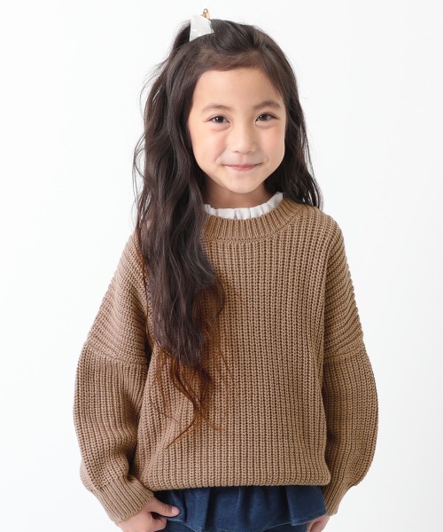 リラックス感漂う『畦編みBIGニット』 ゆるっとルーズな肩落ちシルエット。 ざっくりとしたローゲージの編地がラフでトレンド感のある1枚になっております。 ■素材■ 凹凸のある立体的な畦編みニット ふくらみのあるコットンとアクリルをミックスし編み上げました。 コットンが入っているので、柔らかくてふんわりとした肌ざわり。 水洗いが可能なため、お家でお手入れしやすいのも嬉しいポイントです。 ■ディティール■ 伸縮性:あり ・裏側にお名前タグ付き 子ども服devirock 男の子・女の子のデイリーウェアを中心に、ベビーからキッズまで豊富なラインナップの子供服を展開。 心地よいデイリーウェアや、トレンドの子ども服をお手頃価格で。幅広いサイズ展開で兄妹や親子でリンクコーデも楽しめます。