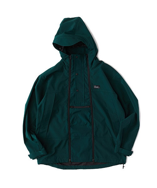 フロントのダブルジップやセンターポケットがデザインアクセントになったボンディングジャケット。適度なハリと厚みのある素材感は1枚で着てもボリューム感のあるシルエットを実現。ダブルジップでフロントパーツを脱着することにより、2パターンのシルエットが楽しめるアイテム。胸のブランドネームも程よく主張してくれる。