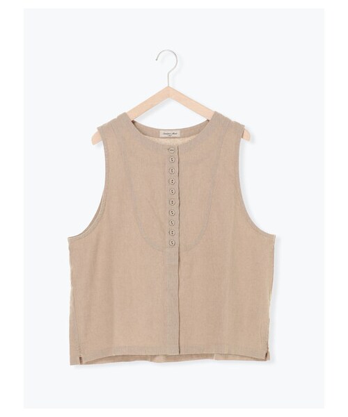 さらりとしたシャンブレー素材のベスト。 ナチュラルな風合いが特長です。落ち着いた、甘さ控えめなデザインが魅力的な1着。 こだわりのディテールで、シンプルなボトムスと合わせるだけで、こなれたおしゃれが完成します。
