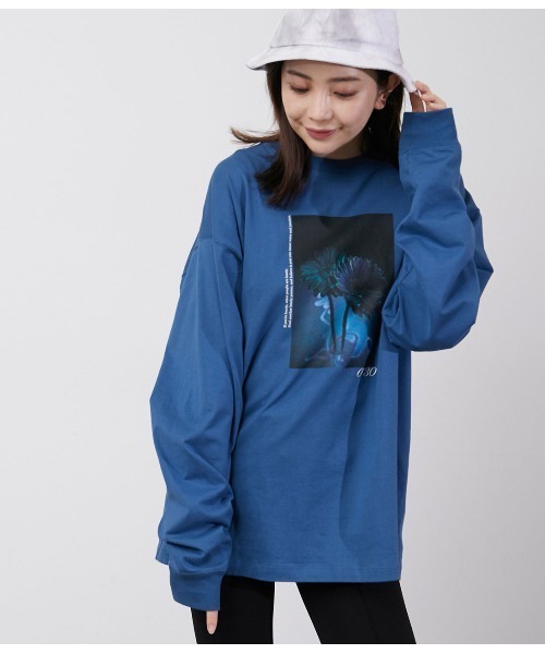 フォトグラファーであるのDaiki nakamura氏の作品をフロントにプリントしたコラボレーションクルーネックロンTeeです。 数字のプリントは、撮影の際に切られたシャッターの秒数です。 暗闇の中スローシャッターでライトを使い光の軌道を描くLight paintingという技法で撮影されたフラワーフォトは、幻想的でもあり、モードな印象のルーズシルエットTeeです。