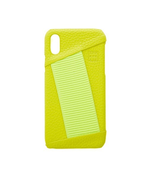 iPhone X / XS用のケースです。 ゴムに手を通すことで操作が安定。 トレンド感たっぷりなネオンカラーが小物で楽しめます♪