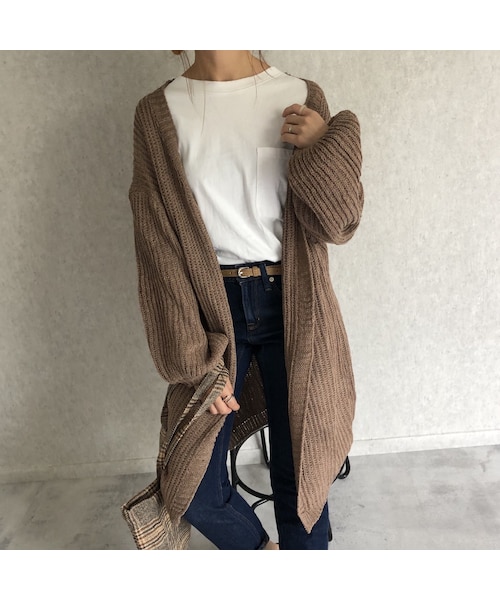 ざっくりゆるっとが大人可愛いロングガウンカーディガン です。 ボタンレスのシンプルなデザインにボリューム袖がアクセントのゆったりシルエットで羽織るだけでこなれた着こなしになります♪ 程良いボリュームとざっくりのあみ目がお洒落な完成度をグッと高めてくれるアイテムです☆ ※モデル身長:161㎝ ◾️カラー ブラウン・ブラック ◾️サイズ 着丈97cm 身幅56cm 肩幅60cm 袖丈46cm 袖口幅9cm ※多少の誤差は予めご了承下さい。 ◾️素材 ポリエステル50% ナイロン50% ※こちらの商品は、アクリル特有のニオイがします。ニオイは洗濯や時間が経つにつれて減少致します。 匂いの感じ方には個人差がございますが、気になる方はしばらくの間天日干しすることをお勧めします。不良品ではございませんので、予めご了承の上ご注文をお願い致します。