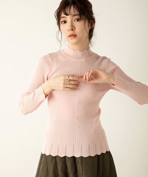 【Revival Item】 毎年人気のニットが新色を加えて今年も登場!【デザイン】レースデザインで女性らしさを高めるニットトップス。なめらかなハイゲージニットで着心地の良さを叶え、フロントの模様が縦に流れるラインをつくり上半身の華奢見えを実現。身体に程よくフィットするコンパクトなデザインと単色カラーで使いやすく、スカートにもパンツにも、またはレイヤードスタイルのインナーとしても活躍する着回し力に優れた仕上がりです。【MODELサイズ】■オフホワイト | MODEL(メイン画像):身長 167cm / B 80cm / W58cm / H84cm■ブラック | MODEL(メイン画像):身長 167cm / B 80cm / W58cm / H84cm■グレー | MODEL(メイン画像):身長 167cm / B 80cm / W58cm / H84cm■ピンク | MODEL(メイン画像):身長 167cm / B 80cm / W58cm / H84cm■レッド | MODEL(メイン画像):身長 167cm / B 80cm / W58cm / H84cm■ベージュ | MODEL(メイン画像):身長 167cm / B 80cm / W58cm / H84cm【MODEL着用サイズ】Fサイズ