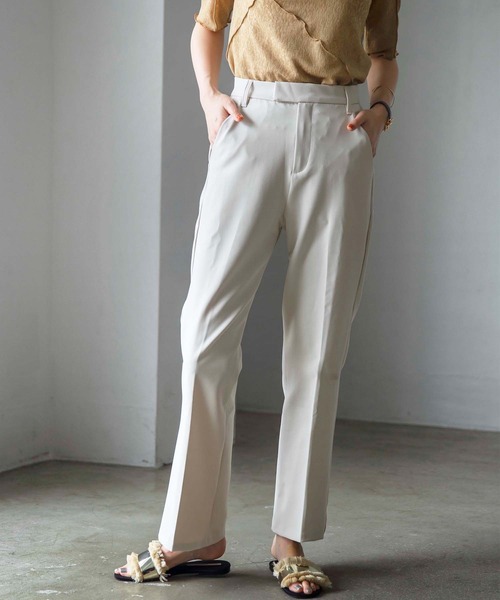 今年トレンドの美脚みせフレアーパンツ 美脚みせ効果も期待できるフレアーシルエットが今年らしい。 センタープレス入りでスタイルが良く見えるきれいなシルエットです。 ひざ下から裾にかけて広がるセミフレアなシルエットが脚をスラっときれいに見せてくれる今年トレンドのフレアーパンツがGeeRAからも登場。 センタープレスのラインがたてよこに伸びるストレッチ素材を使用しており履き心地も快適。 程よい落ち感とはりのあるしっかりめの上品素材だからシーズンレスで活躍します。 フロントはファスナー&ボタン仕様でウエスト周りはすっきりきれいみえ。 後ろウエストはゴム入りだから履き心地もラクラクでストレスフリーにおしゃれを楽しめます。 どんなトップスと合わせても決まるシンプルかつトレンド感のあるシルエットだからカジュアル~きれいめまでON/OFF幅広いコーディネートで活躍します。 足元にはショートブーツやパイソン柄などのパンプスを合わせるとこなれ感UP。 スニーカーとも相性が良く、タウンユースなカジュアルコーデにもマッチします。 お色はベーシックで着回し便利なブラック・アイボリー・ブラウンに加えて、スタイリングを旬顔に引き上げてくれるブルーの4色をご用意。 トレンドライクなカラーパンツをコーディネートに取り入れるのもおすすめです。 <おすすめコーディネート> ひざ下から裾にかけて広がるセミフレアなシルエットなので、長め丈のシャツやざっくりとした編地のニットを合わせたレイヤードスタイルがおすすめ。 ゆるっとしたスタイリングのカジュアルな着こなしが可愛い!トレンド感も一気に増します。 コンパクトなデザインカットソーや袖ボリュームのブラウスをインしてもきれいに決まるのでオフィスなどのきちんとしたシーンでも着用OK! これからの寒い季節にはショートコートやオーバーサイズのチェスターコートとも相性抜群。 ハイネックのニットと合わせるとシーズンムードも高まります。 暗い印象になりがちな秋冬のコーディネートにはアイボリーやブルーのパンツを取り入れて今年らしいカラーパンツコーデを楽しんで♪ ● 裏地無 ● たてよこストレッチ ● ウエスト後ゴム使い ● ポケット有 ● ファスナー前 * 股下70cm 洗濯:洗濯機使用可 --------------------------------------------------------------------- ※サイズ寸法は実際の寸法と多少の誤差がある場合が ございます。 ※ご覧いただいているPC/WEB環境や撮影環境により、 多少色味が異なって見える場合がございます。 【お買い物をよりお楽しみいただく為に】 ▼商品のお気に入り登録をおすすめします♪ 『♡をクリック!』 完売カラーの再入荷やラスト1点の追加、 セールの際の通知を受ける事ができます。 ブランドのお気に入り登録もご一緒にお願い致します。 ---------------------------------------------------------------------