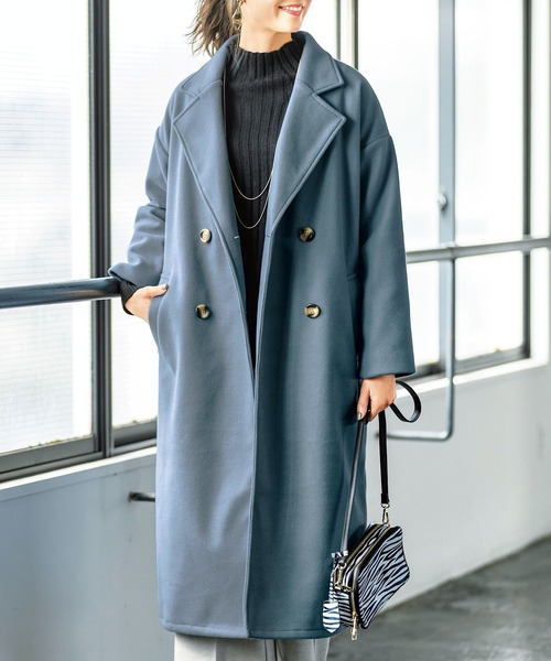 ふんわり軽くて暖かい!着回し力抜群のビックシルエットのダブルチェスターコート♪◯着回し力の高いロング丈のダブルチェスターコート◯後ろにタックの入ったデザインで程良くゆったり♪◯カジュアルからきれいめONスタイルまで着て頂けます■デザイン端正なチェスターコートを羽織って、大人っぽくクラシカルな装いに♪全体的にゆったりとしたトレンド感のあるサイジングで、ドロップショルダーがこなれた着こなしを叶えてくれます。バックにタックが入っているので、バックスタイルも抜かりない仕上がりに。両サイドにはポケットもあり利便性も抜群。■素材ふんわり軽くて柔らかな素材感が人気のフェイクスライバー素材は、上質感とエレガントな雰囲気を演出します。定番のブラックや上品なピンクベージュはもちろん、この秋大人気のブラウンもオススメです。■スタイリング上品なダブルボタンのデザインは、カジュアルにもキレイめONスタイルにも幅広いシーンでご活躍頂けるアイテムです。ゆったりシルエットなので厚手のニットなどをインしても、かさばらずすっきりと着用可能。パンツはもちろん、スカートやワンピースともバランスが取りやすいロングの丈感も嬉しいポイント。デイリーに大活躍間違いなしのコートです◎● 裏地付(総裏)● ポケットあり※ ドロップショルダーデザインです。洗濯:ドライクリーニング<価格改定のお知らせ>2022/07/27より、生産費、原材料費の高騰により価格改定をさせて頂きます。ご了承下さいますよう、お願い申し上げます。---------------------------------------------------------------------※サイズ寸法は実際の寸法と多少の誤差がある場合が ございます。※ご覧いただいているPC/WEB環境や撮影環境により、 多少色味が異なって見える場合がございます。【お買い物をよりお楽しみいただく為に】▼商品のお気に入り登録をおすすめします♪『♡をクリック!』完売カラーの再入荷やラスト1点の追加、セールの際の通知を受ける事ができます。ブランドのお気に入り登録もご一緒にお願い致します。---------------------------------------------------------------------