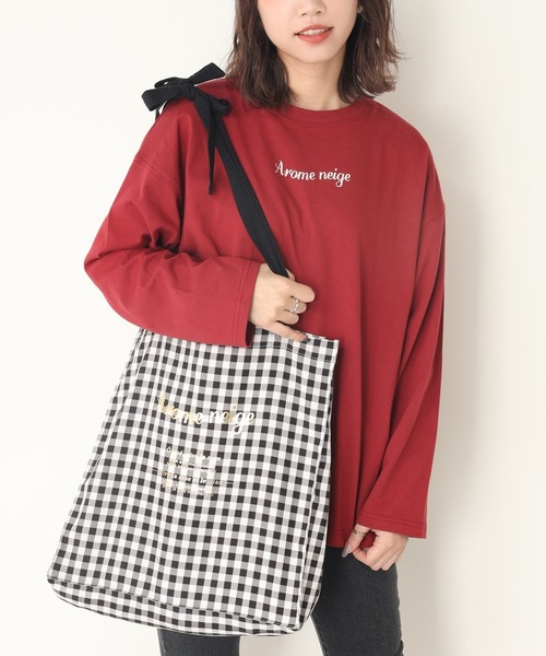 ~NICECLAUP 2020 Autumn Collection~■エコバッグとTシャツがセットになったアイテムが登場!!フロント部分にロゴが施されたTシャツは、シンプルで使いやすいデザインに。カラ―によってデザインの色が異なるエコバックも魅力の一つ。エコバッグはマチが大きめなので大容量なのがうれしいポイント。肩の部分はリボンになっているので、肩にかけるとリボンが目を惹き周りと差を付けられます。リボンの結び目は解けるので、お好きな長さに調整可能。セットで使うのはもちろん、お手持ちのアイテムとセパレートで使うのも◎※サンプルでの撮影のため、実際のものと仕様や色が異なる場合があります。※室内、室外での撮影のため実際より明るく映っていたり、暗く映っていたりする場合がございます。※品質表示を必ずご確認下さい。【商品のお気に入り登録】完売カラーの再入荷や、ラスト1点のお知らせ、セールの通知を受け取ることができます。【ブランドのお気に入り登録】新作入荷や再入荷情報など、ブランドの情報をいち早くお届けします。ぜひご登録ください♪