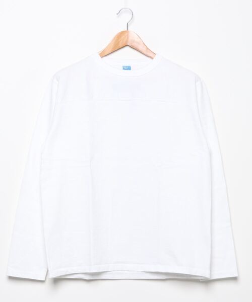 ☆Good On☆ LS HVY FOOTBALL T-SHIRTS無骨で重量感のある9オンスヘビージャージーを使用した春夏の人気商品「S/S HEAVY FOOTBALL TEE」を秋仕様のロングスリーブにアレンジ。一度着ると病み付きになるヘビーオンス生地特有の着心地とシンプルかつ無骨な表情が特徴です。生地やステッチの凹凸に色の濃淡が際立つPigment Dye(顔料染め)カラーは他にはない味のある表情が特徴で、洗濯の度に表面から徐々に色褪せしさらに風合いを増していくので、長く愛用するほどに上質なビンテージ品のように印象が変わっていきます。身頃部分は生地を縦使いしているのに対し、胸の切り替え部分から上は生地を横使いしているため、風合いや色褪せ方の違いによって生まれるコントラストを楽しむことができます。丈夫で長年着続けられるTシャツだけに、愛着を持って自分でビンテージの表情に育て上げていくのが醍醐味です。まるで薄手のスウェットのように存在感のあるTシャツ生地は、肌に触れて心地良い適度な厚みで、良質なアメリカ綿の着心地を存分に味わうことができます。その重厚な生地を支えるための強固でフラットな縫製と、厚みやゴワつきが気にならず動きやすいようにゆとりを持たせたパターンなど、万全の作りこみとなっています。Fabric Made In USAAssembled In Japan【Good On/グッドオン】 創業時からの想いアメリカが大量消費時代に入る以前の衣料品は生地・縫製の質に優れ、何十年も昔の製品が古着としての価値を得て今も多く残っています。こういった製品の、今もなお着続けられるほどの丈夫な作りや、愛着とともに増していく風合いに魅了されて、Good Onの製作がスタートしたのは1997年のこと。 質より量を求めるアメリカの現状において、こだわった物づくりに対して熱くなってくれる工場や生地屋は存在するのだろうか? この難題をクリアすることから取り組み、以来20年にわたって品質と技術を高めながら、全てにおいてこだわった古き良きアメリカの名品を今に落とし込み、毎日何気なく袖を通したくなるような究極のデイリーウェアを生み出し続けています。