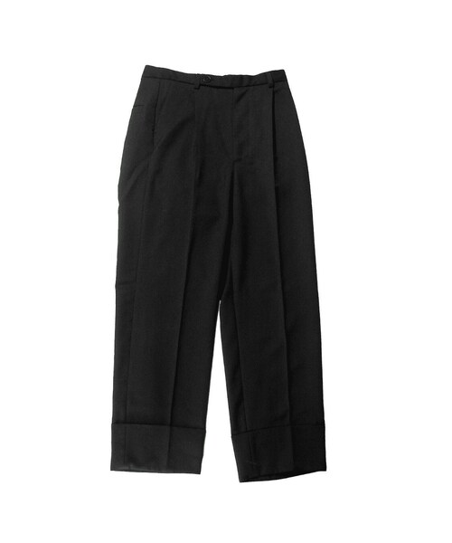大胆な折り返し幅が特徴的なストレートスラックス。 程良いリラックス感でどんなスタイルにも合わせやすいです。 ウールとポリエステルの混紡素材を使用しており、伸縮性があり、履き心地が良く、しわになりにくいのが特徴です。 ポリエステル混紡のため、季節を問わずご着用頂けます。 【カラー】 Black, White 【サイズ】 0, 1, 2 【品番】 SK-PT-02 【素材】 ポリエステル70% ウール30% 【寸法】 ・size0 股上29cm 股下62cm ウエスト70cm ヒップ94cm 膝幅23.5cm 裾幅18.2cm ・size1 股上29.5cm 股下63.5cm ウエスト74cm ヒップ98cm 膝幅24.5cm 裾幅19.2cm ・size2 股上30cm 股下65cm ウエスト78cm ヒップ102cm 膝幅25.5cm 裾幅20.2cm