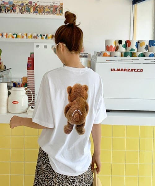 バックのベアーがキュートなTシャツ♡ゆったりとしたサイズ感なので、パンツともスカートとも合わせやすいです。 ※WEARに記載してある金額と、DHOLIC通販サイトに記載してある金額にシステム都合上、稀に誤差が生じます。正しい金額はDHOLIC通販サイトに記載された金額です。
