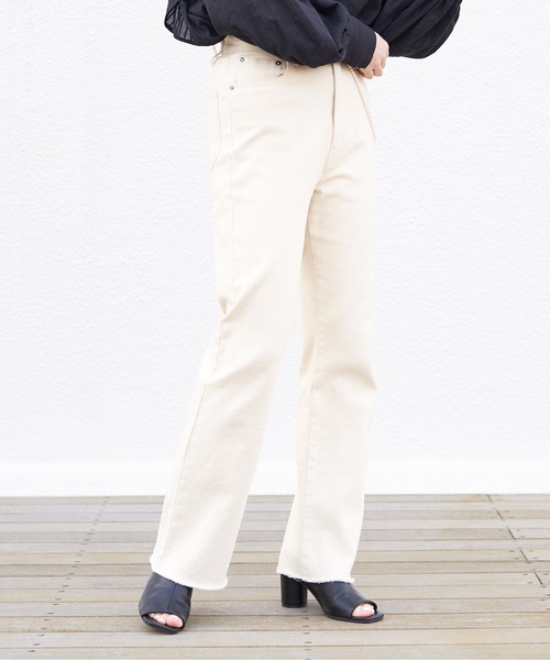 華奢見え間違いなしのストレートデニム。 ”細身のシルエットなのに窮屈に見えない” どんなコーディネートにも合わせやすいシンプルなシルエット。 裾は切りっぱなし風のデザインで大人カジュアルにみせてくれます。 固すぎず、柔らかすぎずストレッチ性の効くデニム生地です。 ■着用レビュー 〇156cmスタッフ 着用サイズS スキニーより履きやすく、ワイドデニムよりスタイルアップ。シルエットが完璧なデニムです。 丈感はフラットシューズでも履けますが、ブーツを合わせて脚長効果で履いています。 〇158cmスタッフ 着用サイズS Sサイズでフィットがあり、ヒップやもものラインをキレイに見せてくれる嬉しいデニムです。 ストレッチが効いているのでピタッとしているのに履きやすい! 〇166cmスタッフ 着用サイズM フルレングスで履きたかったのでMサイズを購入。 Mサイズでもウエストとヒップはゆるくなく丁度良かったです。 Sサイズだと足首が見えるくらいの丈でした。 ▼お気に入り登録のおすすめ▼ 【気になるアイテムを登録】 ハートをクリックしてお気に入りに登録すると 完売カラーの再入荷やラスト1点の通知、セールの通知を受けとることができます。 【ブランドを登録】 新商品や再入荷など、いち早くブランドの情報を受けとることができます。 是非ご利用頂き、お買い物をお楽しみ下さい。