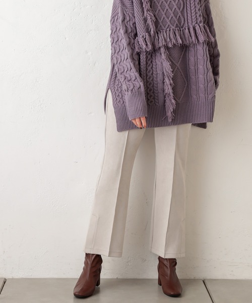 【2020AW natural couture】今から冬本番まで長く使えるパンツ今の時期から冬まで長く使えるパンツをご用意しました。センタープレスになっているので脚長効果も◎ウエストは後ろがゴムになっているので使いやすく、前はタックになっているのでインスタイルにも合わせやすくなっています。また、素材感もポンチスエードを使用している為ほっこりした柔らかい素材感になっており、色味も淡めになっている為幅広いトップスと相性バツグンです。カラーは定番のアイボリー、綺麗目アイテムと合わせやすいグレージュ、トレンド感のあるモカ、淡い色味のモカをご用意しています。----------------------透け感:なし裏地:ふくらはぎまであり伸縮性:若干あり光沢感:なし生地感 :柔らかくて肌ざわりが良い----------------------
