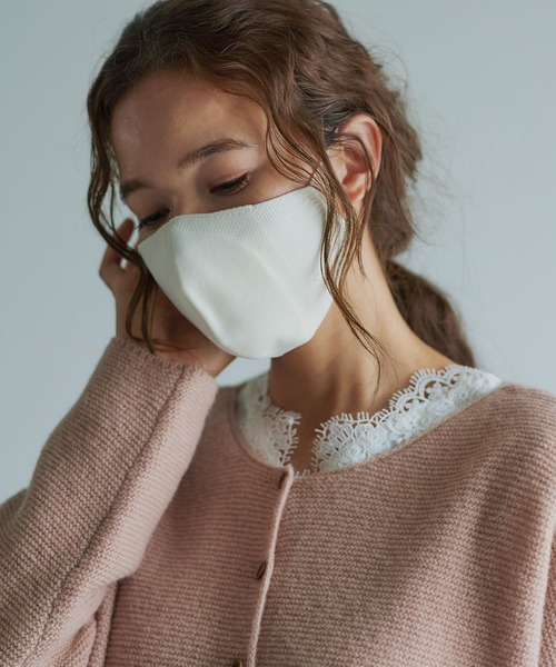◇ PUAL CE CIN SIMLE MASK ◇ピュアルセシンからマスクが登場です。繰り返し洗って使えるのも魅力のニットマスク。フェイスラインに沿って縫い代のない3D構造で編みたてることで隙間を作りません。伸縮性もあるので耳も痛くなりにくく、長時間でも息苦しくなく、快適に使っていただける【JAPAN MADE】マスクです。柔かく淡いカラー展開でファッションとしても楽しめます。フィルター用のポケット付で、より衛生的です。==============================透け感:なし裏地:なし伸縮性:あり光沢感:なし生地の厚さ:普通洗濯:優しく手洗い【スタッフコメント】年齢:30代後半/身長:153cm/普段着用サイズ:Sサイズサイズ感:普段普通サイズのマスクですと大きいものが多いですが、こちらはしっかりフィットします。ニットなので伸縮性もあり、柔かく着け心地も良いです。きれいなカラーなので、顔うつりもよく見えそうです。素材感:柔かく伸縮性があります。==============================※撮影場所やお使いのモニター環境により若干お色味が異なる場合がございます。特にロケの撮影では明るく見える傾向にございます。※予約商品はサンプルで撮影をしております。若干の仕様が変更になる場合がございますので予めご了承の上ご注文くださいますようお願いいたします。ご使用上の注意・皮膚に異常がある場合や、異常が現れた場合はただちに使用を中止してください。・マスクを使用中、臭いで気分が悪くなった場合には使用を中止してください。・高温多湿な場所、直射日光のあたる場所での保管は避けて下さい。・個人差により眼鏡がくもることがありますので、運転の際などは十分にご注意下さい。・洗濯の際は手洗い、もしくはネットに入れて洗濯後の平干しを推奨致します。・伸縮性のある素材を使用している為、干す際に形を整えて頂くと、より長くきれいな形状を保ったままご使用いただけます。・有害な粉塵、有害ガス、細菌、ウイルス等を防ぐことはできません。