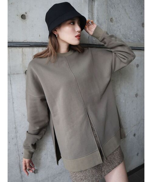 ■スリットデザインのロングトップス■裏毛を使用したロングトップスです。両脇・センターフロントにスリットが入っており、ボトムがさり気なく見えるデザイン。ヒップまで隠れる着丈が着用しやすいアイテムです。スリットが入っていることで、ワイド系のボトムを合わせて頂いてもスタイリングのバランスが取りやすくなっています。ハイウエストやジャストウエストのボトムに、片方の前身頃をタックインして着て頂くのもおすすめスタイリングです!※画像の商品はサンプルです。実際の商品と色味、仕様、加工、サイズ、素材等が若干異なる場合がございます。----------------透け感:なし生地の厚さ:普通裏地:なし伸縮性:なし----------------