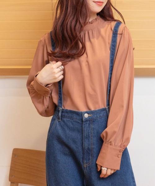 <DESIGN> シンプルながらもフリルのスタンドカラーに少し長めのカフスが女の子らしいブラウス♪ 後ろのネック部分はリボンで結ぶ使用で、後ろ姿もかわいい♡ スタンダードなシルエットはどのボトムにも合わせやすく、着回しが効きます。 上からニットカーディガンやトレーナーを重ねると、スタンドカラーのフリルが見えるので、ガーリーさを足したい時にインナーとして中に忍ばせるのもおすすめのスタイリングです♪ フレアスカートなどと合わせて、フェミニンなコーディネートを楽しむのはもちろん、デニムと合わせてカジュアルガーリーに仕上げるのもおすすめです! <CARE> ※詳しくは製品に付属している洗濯表示をご参照ください。 ※撮影環境により、多少実際のカラーと異なる場合がございます。 また、携帯やスマートフォン、パソコンなどの画面上と実物では多少色が異なって見える場合がございます。