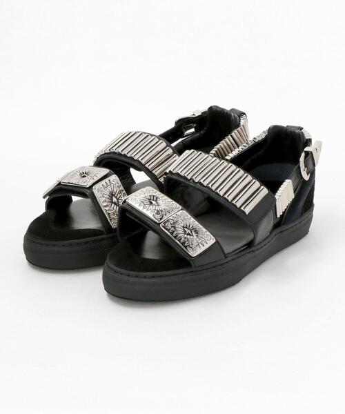 ベルトにメタルパーツの装飾をあしらったサンダル。スニーカーソールで歩きやすく、これからのシーズンはソックスあわせで活躍してくれる1足です。<TOGA PULLA(トーガ プルラ)>デザイナー古田 泰子氏が1997年に立ち上げたブランド。TOGA PULLAは、コレクションラインのデザインで使われる造形やムードをデイリーに落とし込んだラインです。ウエスタン要素、メタル使いといったブランドのシグネチャーをベーシックと融合させTOGAの考える日常着を提案、展開しています。【シューズ商品の発送に関して】商品に不良が無い場合、包装紙および箱の破損がございましても、発送させて頂いております。予めご了承ください。店舗へお問い合わせの際は、全国のASTRAET各店舗まで下記の品名/品番をお申し付けください。品名:TOGA P BELT SNDL 品番:54313430352