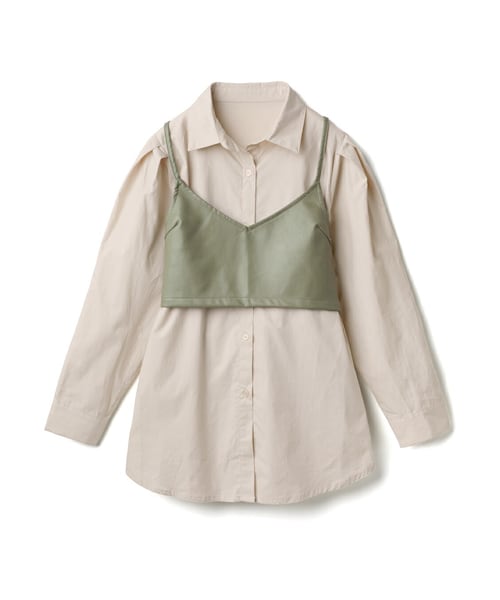 レイヤードスタイルが揃うシャツとビスチェがセットになったお得なアイテム。 フェイクレザーのビスチェがクラシカルな雰囲気をアップ。 バックリボンで後ろ姿まで可愛くアピール。 着こなしにヌケ感を生み出す、シャツのゆったりフォルムもお気に入り。 ★ビスチェとシャツの2点セットです。