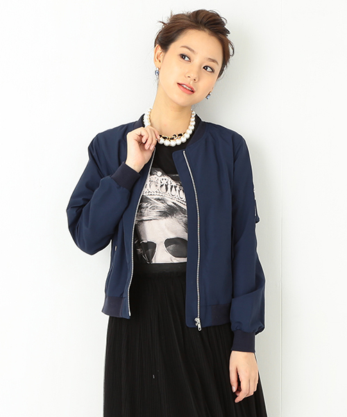 薄手のグログラン生地を使用した"MA-1"ブルゾン。 コットン素材混紡の軽めの生地で、一枚仕立てなのでまだまだ暑い今の時期から、肌寒くなる秋口にかけて重宝します。程良い光沢感があり、ブルゾンでもメンズライクな印象になりすぎず幅広いコーディネートに合わせて頂けます。 左袖部分にはデザインポイントを付け、本物さながらのディティールワークが光ります。 辛口アイテムにはガーリーなアイテムとのMIXスタイルがおすすめ!シルエットにメリハリのあるワンピースやタイトスカートとのスタイリングが◎。 店舗へお問い合わせの際は下記品番をお伝えください。 品番:63-18-0037-166