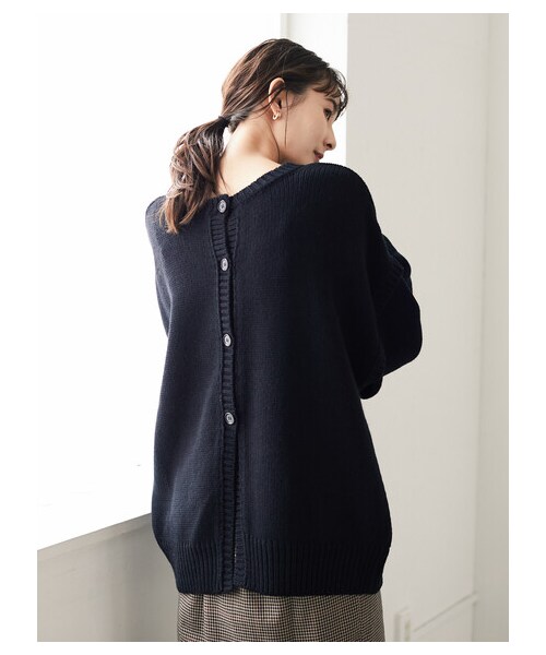 袖の切り替えがポイントに映える、肉厚感のあるニットで仕立てたプルオーバー。 ドロップショルダーのオーダーシルエットが抜け感をメイクします。前後どちらでも着られるうれしい2WAYアイテム。 きれいめやフェミニンな着こなしに合わせるだけで、ほどよいカジュアル感を生み出せる1品です。