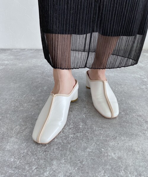 ラフに履けるお洒落なミュールです☆ややスクエアなつま先、ライニングを利かせたアッパーデザイン。足の甲を優しく包み込んでくれるので、足あたりも良く履きやすさ◎です!合皮のブラック、ホワイトとジャガード素材のボヘミアン柄は他にはないジーナシスオリジナルデザイン。円柱型のヒールでさりげなく遊び心をいれました♪スラックスやフレアーパンツにさらっと合わせたりロングワンピースやスカートで女性らしくこなすのもおすすめ★