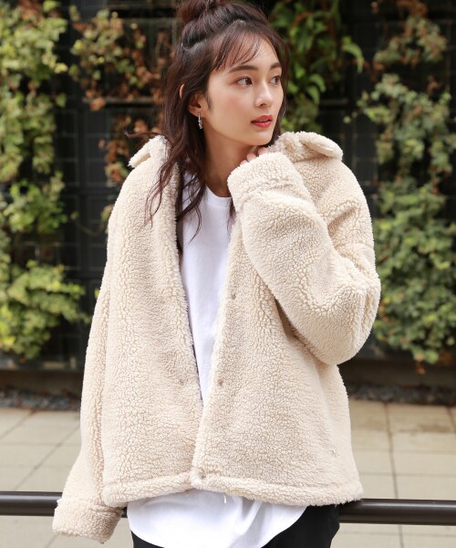 人気のボアアウターにコーチジャケットが登場。ドロップショルダーでゆとりのあるシルエットなのでトレンド感はもちろん、着込みやすくなっています。少し大きめの襟なので顔回りをすっきり見えてくれるのもポイント。ロンTやパーカーを合わせたストリートなスタイリングがおすすめです。