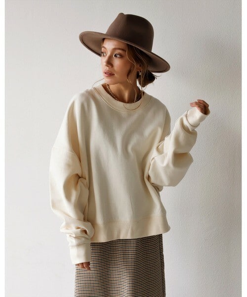 ♦ゆったり感がかわいい♪ビッグスリーブスエットプルオーバー 【特徴】 程よいオーバーサイズなシルエットと フレアスリーブが女性らしいカジュアルスタイルに。 裏起毛なので1枚でも暖かく着心地もゆったりしているので ストレスフリーに着て頂けます◎ 着回しのきくシンプルなデザインなので ボトムを選ばない万能アイテムになっています♪ 使いやすい定番カラーに加えて、 コーデの主役になるピンクを揃えました。 【スタイリングポイント】 定番のデニムはもちろん、チェックのタイトスカートや ティアードスカートでレディライクな着こなしがおすすめ◎ ボーダーTをレイヤードすると定番のコーデにこなれ感をプラスに♪