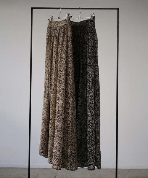 スタイリングのポイントにぴったりな柄スカート 落ち感のあるシフォン生地を使用したレオパードスカート。 シーズンレスな素材なので通年してスタイリングを楽しめるの嬉しいポイント。 冬にはニットやジャケットと合わせて、夏にはトップスインで軽やかにご着用頂けます。 たっぷりマキシ丈でどんなシューズにも合わせやすく、くたっと抜け感のあるコーディネートが完成します。 ・ウエストゴム入り ・裏地有り ※同サイズ・同色等であっても各商品毎に多少の誤差がある為、サイズ表記はあくまでも目安としてご参照ください。