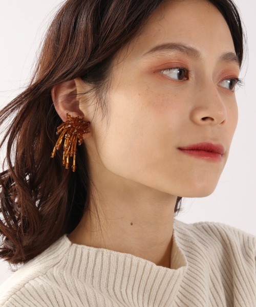 存在感のある大きめサイズのビーズイヤリング。 付けるだけで、顔まわりに華やかさをプラス! ボリュームのあるイヤリングなので、すっきりとしたヘアアレンジと合わせるのがお勧めです★