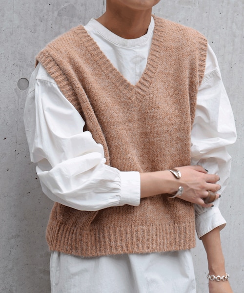 ◆アイテム詳細◆ 【Marient 20A/W】 ルーズなサイズ感が魅力的なVネックニットベスト。 脇が大きく開いているので袖ボリュームのトップスの上にも着用しやすいです。 シャツやカットソーにレイヤードするだけでこなれ感を演出できて旬のコーデを楽しめます。 インナーによってカラーを見せたり、同トーンコーデを楽しんだり、その日の気分で着回しが可能なアイテムです。 デザイン性のある女性らしいアイテムはレディライクな着こなしにぴったりです。 ーーーーーーーーーーーーーーーーーー 【COLOR】エクリュ・オレンジ・チャコール 【SIZE】Fサイズ 平置き(㎝) 着丈56 肩幅40 身幅55 裾幅49 【素材】本体 アクリル90% 毛10%