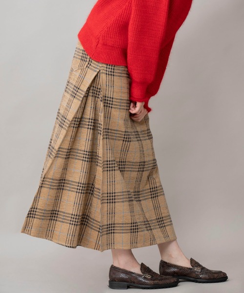 □2020 AUTUMN&WINTER COLLECTION□◆人気のマキシスカートにチェック柄が新登場!立体感のあるシルエットがレディライクなマキシスカート◆<MATERIAL>アクリルのモール糸を使用することで、コーデュロイのような凸凹とした表面感が生まれた暖かみのある先染チェック素材です。コットン/アクリル素材なので、ウールのチェックよりもカジュアルでチクチク感のない肌触りで、早めの時期から使え、普段使いにぴったりで特別感のある素材です。<DESIGN>人気のデニム&チノスカート(ブランド品番:MN191S04、MN192S22)と同型のマキシスカートです。腰回りがすっきりとしたスタイルアップ効果のできるタックマキシスカートです。脇に三角マチを入れ、ボックスタック状に挟み込み、立体的なシルエットを作り出し足さばきもよく、ストレッチなしでもストレスフリーな穿き心地です。三角マチの先端部分にステッチを入れることで、腰回りがスッキリ見え、ボックスタックが開き過ぎずボリューム感をおさえられることで綺麗なシルエットを演出し、タイルアップ効果が生まれます。この素材はプレスでくせづけることができないので脇のタック接ぎにステッチをかけています。裾の始末は、三巻ステッチの仕様になります。丈感のあるトップスでもフロントタックインで着るとバランスよくコーディネートできます。サイドのボックスタックを見せてトップスを合わせると、縦長のスッキリしたラインが強調されます。デニムやチノとは異なる少しクラシカルなイメージが楽しめる1枚です。<COLOR>■ブラック:ブラックをベースに、ベージュ、ホワイト、グリーン等を効かせたはっきりとしたチェック。■ベージュ:キャメル寄りのベージュをベースに、ブラック、ブルー等がアクセントになった優しい雰囲気のチェック。*お取扱いについては、商品についております品質表示にてご確認ください。洗濯:ドライクリーニング.............................≪INFORMATION ≫............................▼商品のお気に入り登録▼『♡』マークを押してお気に入り登録して頂いた商品は、セール開催の通知やクーポン発行などのキャンペーンなど、お得な情報をいち早く受けとる事が出来ますので、ぜひご登録ください。