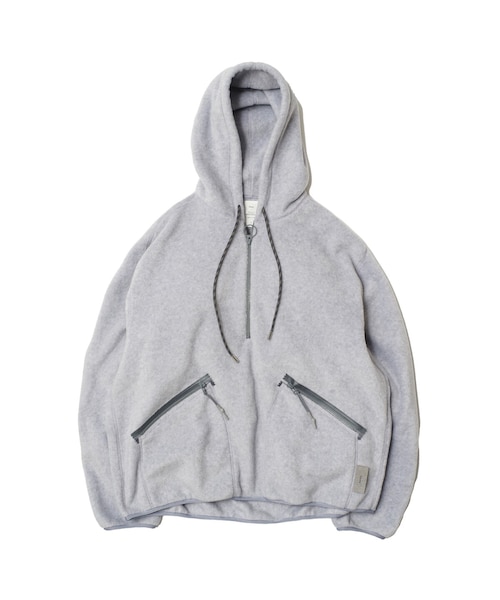 両面起毛フリースを使用したハーフジップパーカー。両面起毛でボリューム感、ウォーム感のある素材。ゆったりとしたシルエットで、腰ポケットに施されたファスナーとプルコードがアクセントに。 カラー:パープル サイズ0:裄丈92.5cm,身幅66cm,着丈72.5cm 素材:ポリエステル75%,レーヨン25% 品番:NMCU-20AW-003