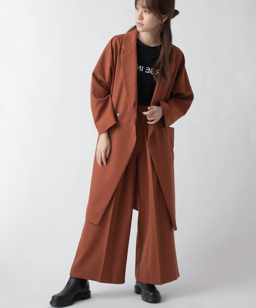 -miniyu/ミニュウー 【La SRIC】 ゆるっと感が旬なイメージのロングテーラージャケット。ドロップショルダーからの分量感と前身ドレープデザインが絶妙なバランスです。なめらかでキレイめな素材感も大人な印象で、テラコッタ色とブラック色は別売り同素材のセンタータックワイドパンツ(60030)とのセットアップコーデが楽しめます。 サイズ(38) 着丈97㎝ 肩幅82㎝ 身幅58.5㎝ 裾幅58㎝ 裄丈75㎝ 【La SRIC】Japan Madeを中心に上質な素材と細部の仕様、縫製から感じられる着心地にこだわった完成度の高いパターン、少しエッジーなデザインを展開する東京ブランド。 【INFORMATION 】▼お気に入り登録▼『♡』マークを押してお気に入り登録をすると、割引クーポンの発行/セール開催の通知/タイムセール通知/人気商品の再入荷通知など、miniyu取扱いブランドのお得な情報を受け取ることができます。 気になった商品はどんどん『♡』マークを押して、登録してくださいね♪ ※モニター・環境等により実際の商品と多少色味が異なって表示される場合がございます。予めご了承をお願いいたします※