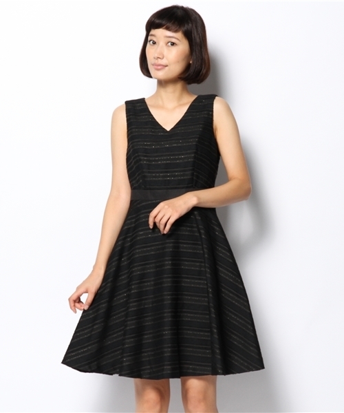 デイリーにもパーティーシーンにもお勧め!薄手の素材に太めの糸でボーダー柄を織り上げたフェミニンな素材のワンピース。別布で切り替えたウエストのラインがスタイルにメリハリをつけ、すっきりとした印象に。フィット&フレアーのシルエットが女性らしい華やかな一枚です。 【メイン画像】 Model:H173 B80 W58 H88(cm) Size : 38 【詳細画像】 Model : H166 B78 W58 H88(cm) Size : 36店舗へお問い合わせの際は下記品番をお伝えください。 品番:68-26-0210-002