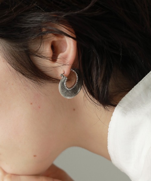 ニュアンスのあるカーブプレートのピアス。質感を少しくすませ、ヴィンテージのような風合いに仕上げています。小ぶりなサイズ感でどんなスタイリングにもはまります。