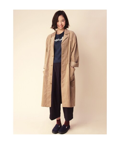 コットン100%のコーデュロイを使用したショップコート。裏地は付いていないので、ジャケット感覚で着用できます。ワークウエアデザインですが、ドロップショルダーなので女性的で大人っぽい仕上がり。 スカートにもパンツにも合わせられる人気アイテムです。