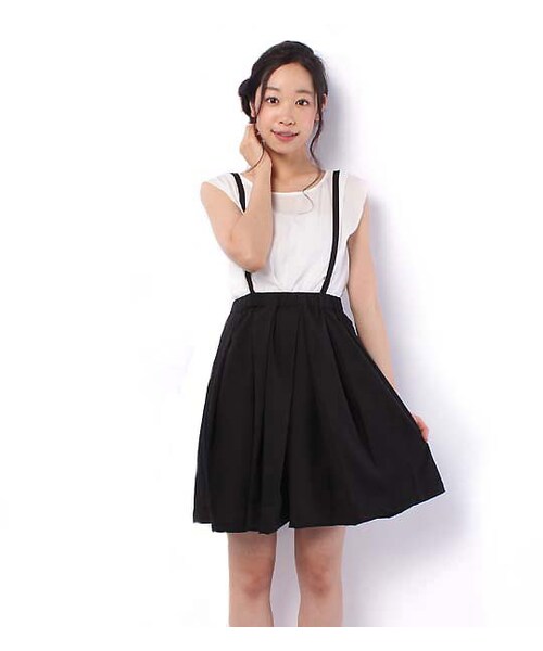 ショルダータックでアクセントを添えたノースリーブトップス×ボックスプリーツフレア吊りスカートのセット。サスペンダー部分は取り外してシンプルに楽しむこともできます。それぞれを単品で着回せるので、コーディネートの幅も広がるのが◎。ワードローブに押さえておきたいアイテムです。