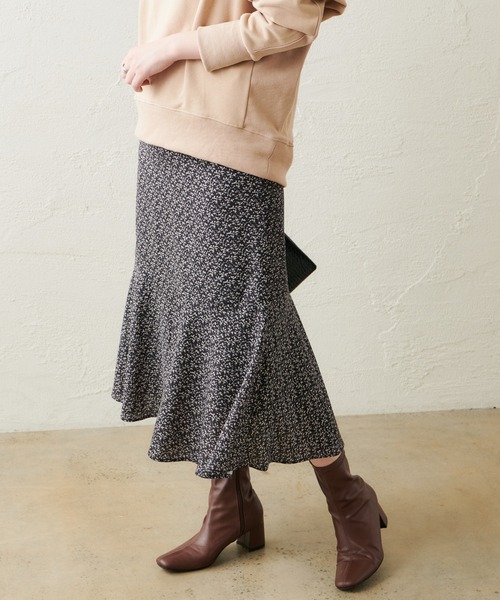 【2020AW natural couture】女性らしいマーメイドラインが魅力大きい花柄がレディライクなスカート。スタイルアップが期待できる、デザイナーこだわりのマーメイドラインが魅力な1着。裾部分の切替でスカートのシルエットをより綺麗に演出。裾に向かって広がるデザインが歩く姿を綺麗に彩る大人女子にぴったりのスカートです。タートルネックやリブニット等キレイめなコーディネートはもちろん、ゆるっとしたスウェットやニットと合わせても◎豊富な色展開で様々なシーンでお使い頂けます。=========================透け感:なし裏地:あり伸縮性:なし光沢感:なし生地感 :さらっとしていて着やすい素材=========================