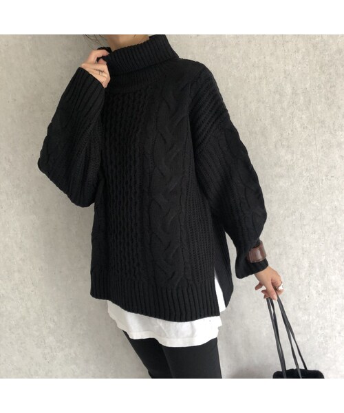 フロントや袖のケーブルデザインが可愛い、しっかりとした厚みのあるタートルニット。 ゆったりとしたサイズ感で、楽な着心地も嬉しいポイント! 重めになりがちなニットですが、裾のサイドにスリットが入ってることで、すっきりとした印象に♪ パンツスタイルはもちろん、スカートスタイルにも合い、幅広いコーデをお楽しみいただける着回しのきく優秀ニットです。 ※モデル身長161cm ◾️カラー ライトグレージュ・キャメル・ブラック ◾️サイズ 着丈:60cm/64cm 肩幅:58cm 身幅:112cm 袖丈:45cm ※多少の誤差は予めご了承ください。 ◾️素材 アクリル100% ※こちらの商品は、アクリル特有のニオイがしますが、ニオイは洗濯や時間が経つにつれて減少致します。匂いの感じ方には個人差がございますが、気になる方はしばらくの間天日干しすることをお勧めします。不良品ではございませんので、予めご了承の上ご注文をお願い致します。