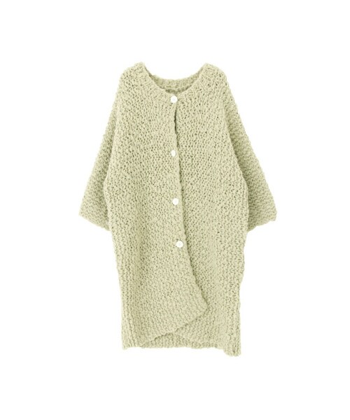 このアイテムは予約商品です●お届け予定時期:2014年10月上旬●予約受付期間:限定数に達し次第終了※工場の生産の都合上、納期が変更になる場合がございます。発送日の前後については予めご了承ください。※画像の商品はサンプルです。実際の商品と仕様、加工、サイズが若干異なる場合がございます。※納期の異なる予約商品、その他ブランドの予約商品、通常商品との同時決済はできません。※予約アイテムのキャンセルはご遠慮ください。※今回は受付数量に限りがございます。限定数に達し次第、ご予約は締め切らせていただきますので予めご了承願います。ざっくりと編み上げられた可愛いニットガウン。膝までスッポリ包み込んでくれるロング丈でカジュアルになり過ぎない絶妙なバランスに。全体的にゆったりとしたデザインなのでヌケ感のあるスタイルが楽しめますよ。インナーを重ねてもゴワゴワ感がなく、ふんわりとした柔らかな素材が着心地の良さと暖かさを感じさせてくれる魅力的な1枚。アウター感覚で着られるから長い期間で重宝しそう。タートルやタイトスカートなど少しすっきりシルエットの大人コーデに取り入れるのがオススメ♪※詳しい洗濯方法については、商品の品質表示タグをご覧ください
